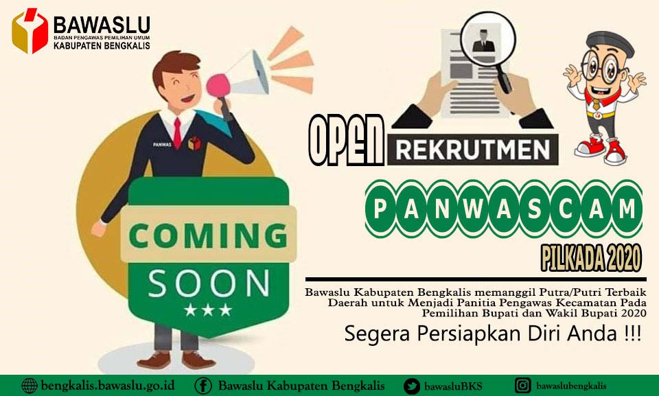 Coming Soon Recruitment Panwascam humas | Senin, November 4, 2019 - 15:07 Tag PENGUMUMAN Share Berita Terkini humas Rabu, Januari 28, 2026 - 15:31 Lakukan Diskusi Konsolidasi Demokrasi Bersama Sekretaris Desa Tasik Serai Kecamatan Talang Muandau, Mendra Bahas Isu Netralitas Aparatur Desa dan Larangan Politik Praktis humas Senin, Januari 19, 2026 - 15:36 Tindaklanjuti Instruksi Ketua Bawaslu RI, Bawaslu Bengkalis Mulai Lakukan Konsolidasi Demokrasi humas Senin, Januari 19, 2026 - 08:38 Pimpin Apel Senin Pagi Sekretariat Bawaslu Bengkalis, Budi Kurnialis : Assistensi Bawaslu Perlu dimaksimalkan Lihat Lainnya
